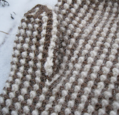 Don't you love the name? Nothing describes the texture as well as bumpity! These were such a fun knit. It was a nice in between project after knitting Christmas gifts and before jumping back into knitting my sweater. I am not sure why, but the ultimate comfort knit to me is mittens....... A quick project with a little increasing and decreasing for interest.